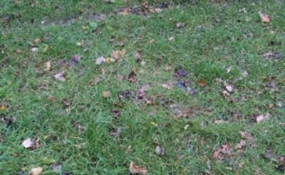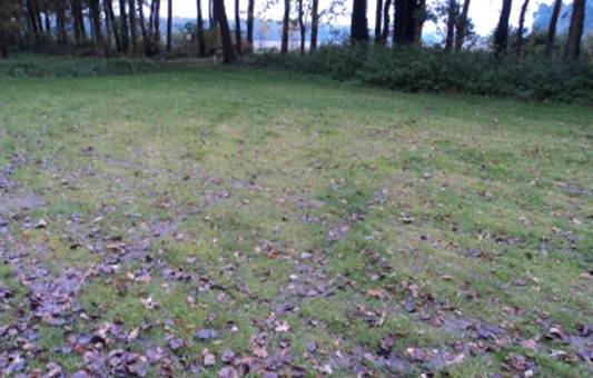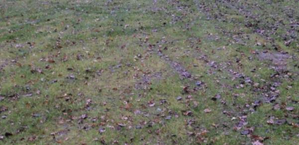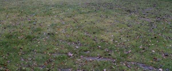 the grass in the open area showed a round place of yellow grass